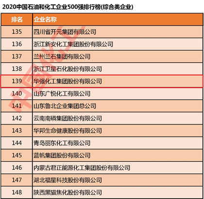 10月20日,2020年“中國(guó)石油和化工企業(yè)500強(qiáng)發(fā)布會(huì)暨后疫情時(shí)代中國(guó)化工大發(fā)展對(duì)策高峰論壇”以直播形式在線上舉行。會(huì)上發(fā)布了2020中國(guó)石油和化工企業(yè)500強(qiáng)排行榜,我公司以亮麗的成績(jī)榮登榜單,位列第139名。這是我公司連續(xù) 4年入圍中國(guó)石油和化工企業(yè)500強(qiáng)榜單,此外我公司連續(xù)多年躋身中國(guó)化肥企業(yè)100強(qiáng)、中國(guó)磷復(fù)肥企業(yè)100強(qiáng)。