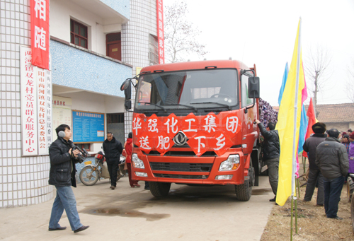華強(qiáng)化工集團(tuán)送肥下鄉(xiāng)專車到達(dá)兩河鎮(zhèn)雙龍村