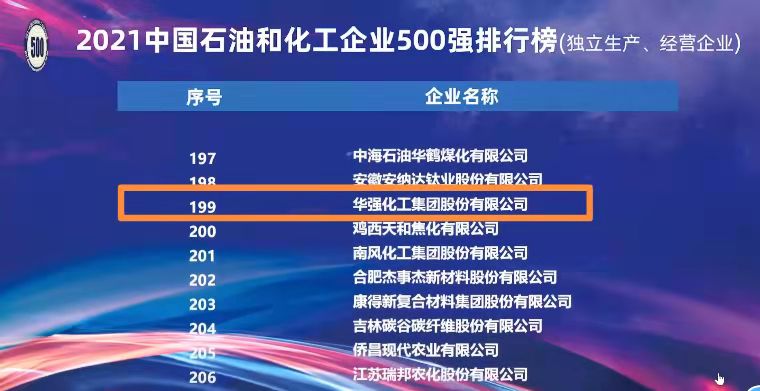 11月29日,2021中國(guó)石油和化工企業(yè)500強(qiáng)發(fā)布會(huì)暨雙循環(huán)新格局下石油化工大企業(yè)的機(jī)遇與挑戰(zhàn)高峰論壇和大連市石化產(chǎn)業(yè)推介會(huì)在線上舉行。會(huì)議發(fā)布了2021中國(guó)石油和化工企業(yè)500強(qiáng)排行榜(綜合類)、2021中國(guó)石油和化工企業(yè)500強(qiáng)排行榜(獨(dú)立生產(chǎn)、經(jīng)營(yíng)企業(yè)),以及分行業(yè)排行榜。我公司以亮眼的成績(jī)榮登2021中國(guó)石油和化工企業(yè)500強(qiáng)排行榜單(獨(dú)立生產(chǎn)、經(jīng)營(yíng)企業(yè)),位列第199位。這是我公司連續(xù) 5年入圍中國(guó)石油和化工企業(yè)500強(qiáng)榜單,此外我公司連續(xù)多年躋身中國(guó)化肥企業(yè)100強(qiáng)、中國(guó)磷復(fù)肥企業(yè)100強(qiáng)。