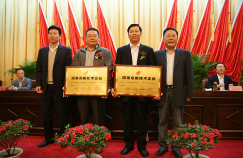 4月11日下午,市委、市政府在市委會(huì)議室隆重召開(kāi)全市科學(xué)技術(shù)獎(jiǎng)勵(lì)大會(huì),市委書(shū)記鄭廷貴、市委副書(shū)記、市長(zhǎng)石顯銀為我公司頒發(fā)了國(guó)家高新技術(shù)企業(yè)銅牌,我公司副總經(jīng)理?xiàng)钍懒⒋砉绢I(lǐng)取銅牌。會(huì)議還表彰了2011年度為當(dāng)陽(yáng)科學(xué)技術(shù)進(jìn)步作出突出貢獻(xiàn)的單位和個(gè)人。市委副書(shū)記、市長(zhǎng)石顯銀作了重要講話(huà)。