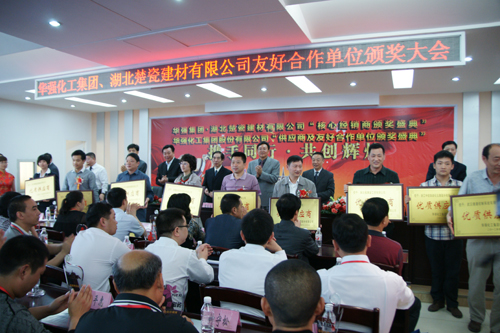 正值鮮花盛開、惠風(fēng)和唱的美好時節(jié),我們迎來了華強化工集團投產(chǎn)40周年暨企業(yè)改制10周年的隆重慶典。500余名來自全國五湖四海的嘉賓,也興致勃勃地從四面八方來到華強化工參加了慶典活動??蛻舢斨?,有代理我公司尿素、復(fù)合肥和化工產(chǎn)品、瓷磚經(jīng)銷的新老客戶,也有長期與華強化工友好合作的施工單位、設(shè)備安裝單位和物資供應(yīng)商的代表。他們帶著美好的祝福和真誠合作意愿,與我們歡聚一堂,共同見證華強化工40年的滄桑巨變和共同慶祝企業(yè)10年改制的輝煌成就。
